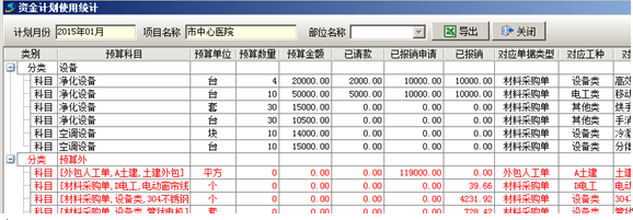 其中黑色明細代表的是,資金計劃表中的內容,而紅色代表的是預算外的。