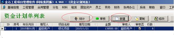 是在資金計劃列表中,找到相應的資金計劃單,然后點【統計】按鈕,就會彈出對應的統計表。如下圖: