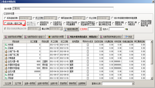 點擊系統的“工程管理”-“工程成本利潤對比”: