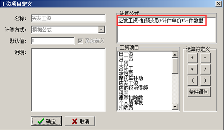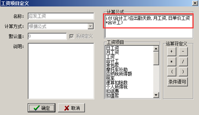 工資項(xiàng)目定義中應(yīng)發(fā)工資應(yīng)定義為: