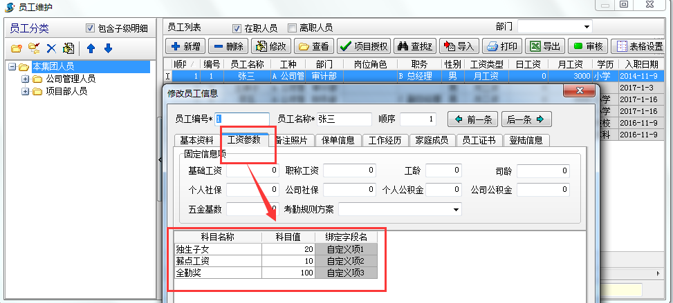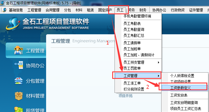 二、 菜單欄→員工→工資管理→工資參數定義