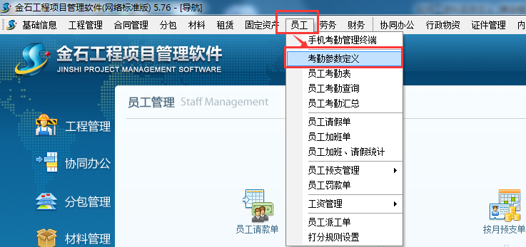 一、 菜單欄→員工→考勤參數定義