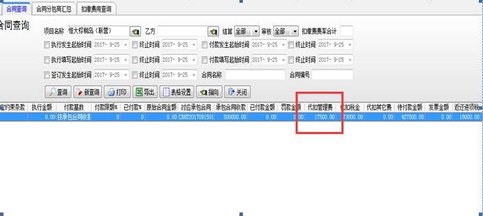 ④“分包合同”查詢掛靠單位資金剩余應返還工程款金額等(下圖中代扣的管理費17500元就是我們公司的盈利)
