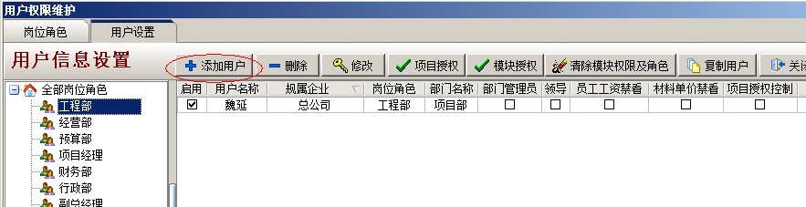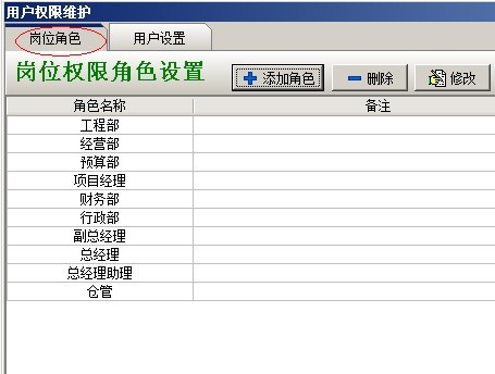 打開(kāi)用戶權(quán)限設(shè)置后,首先設(shè)置【權(quán)限角色】,下圖所示: