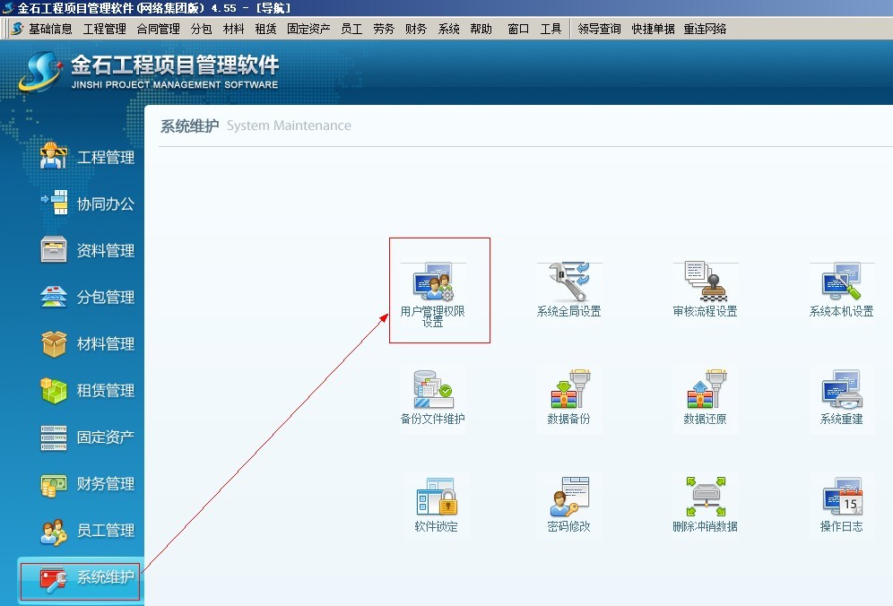 首先用超級(jí)用戶登錄工程項(xiàng)目管理軟件客戶端,在系統(tǒng)維護(hù)模塊找到審核流程設(shè)置。