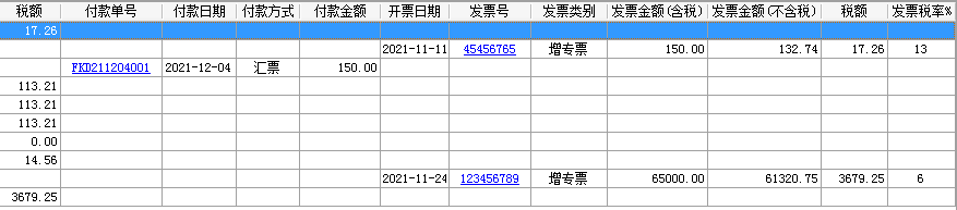 6、發票類別:根據發票單中‘發票類別’拆分:類型為”增值稅專用發票“顯示為”增專票“;.非增值稅專用發票的發票類型,按單據原發票類型顯示;其中付款單和驗收單顯示空白。