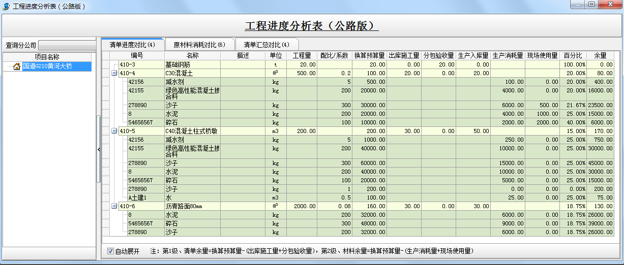 在施工進度計劃的基礎上,即(工作部位分解)的基礎上,編制材料需求計劃、建立材料成本維護、材料加工清單、材料出庫單或調撥單關系明細,產生詳細的進度比較和詳細的歸納比較。