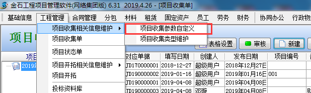 2、項(xiàng)目收集類型:菜單欄 “工程管理模塊”→“ 項(xiàng)目收集類型”