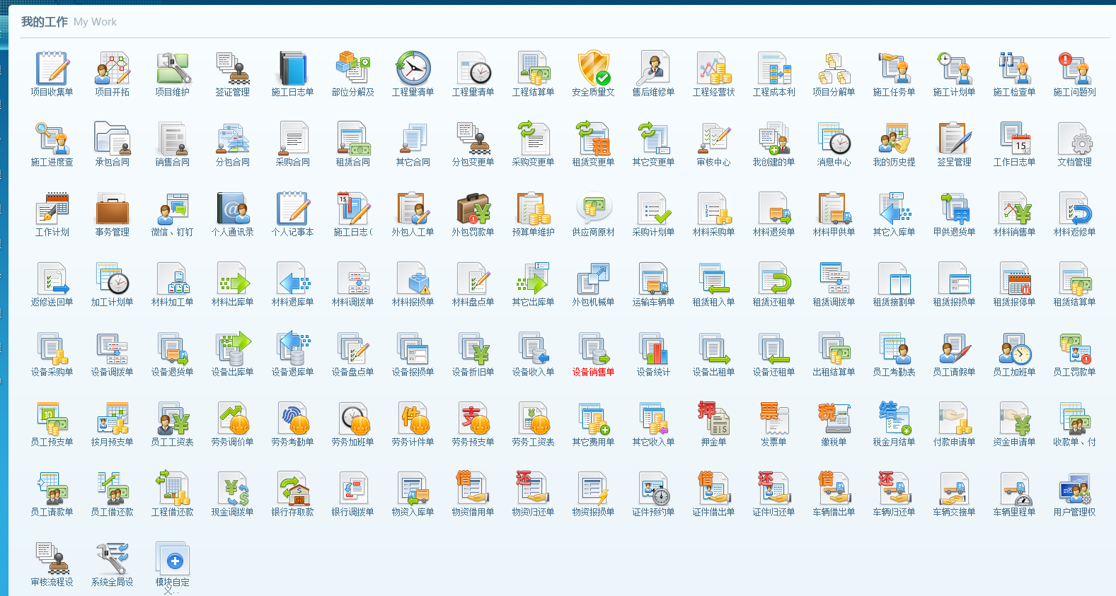 折疊:全部圖標折疊顯示,此操作,便于快速定位主模塊下的單據(jù)和查詢。