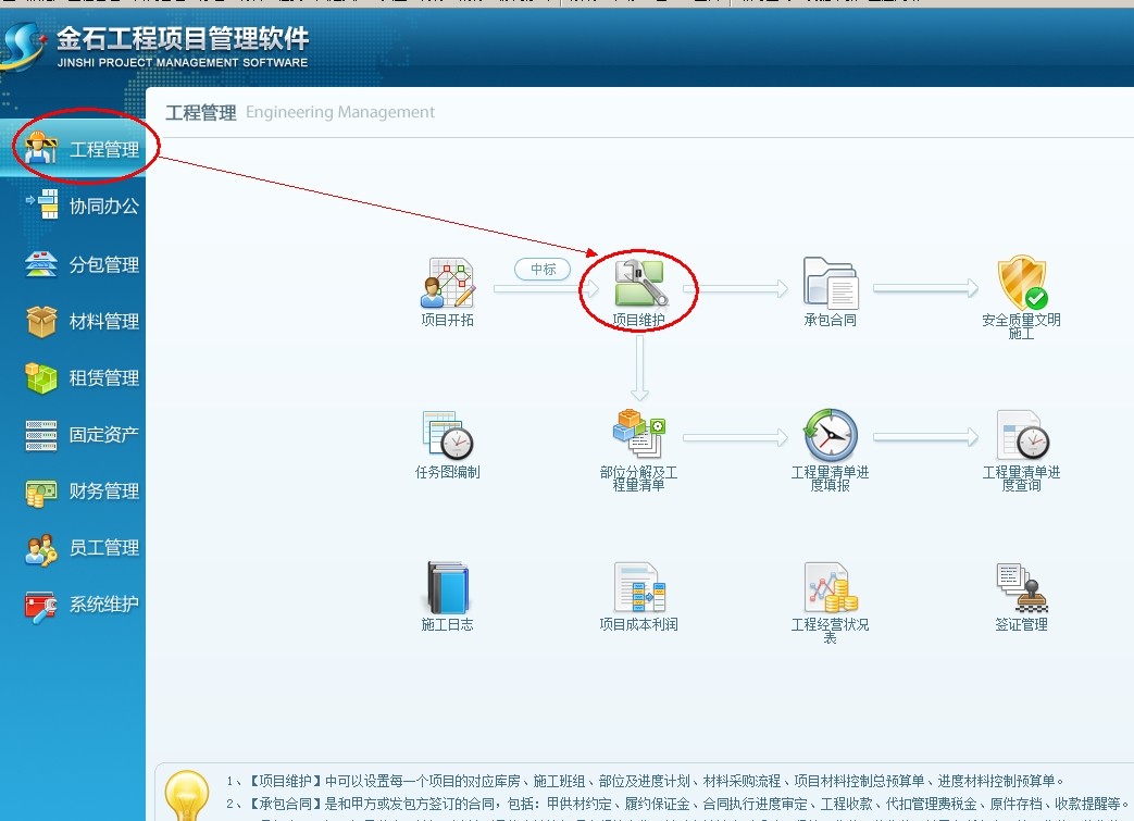 以公司的“市場部”或“銷售部”來進行前期費用的承擔。如果項目沒有中標,則前期跟蹤費用自然歸屬到該部門下,如果中標通過在工程項目管理軟件【項目維護】中新建項目,從項目開拓中引入,并確認結轉費用即可。