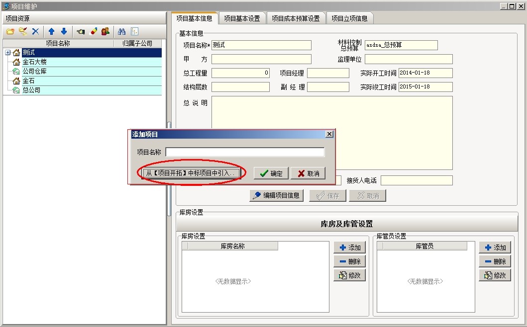 (2)打開工程項目管理軟件項目維護,新建項目,選擇從項目開拓引入項目,投標項目發生的費用會一并帶入到新建立的項目。