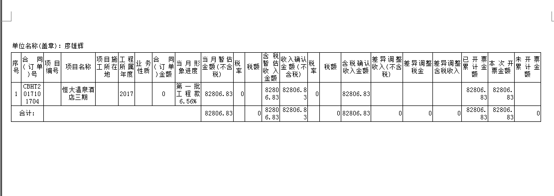 4.填寫“承包合同”執行進度,對應工程結算清單,(下圖)“進度申報金額”就是在工程結算單中填寫的暫估收款金額,“進度審定金額”就是報給甲方審定后的最終收入金額