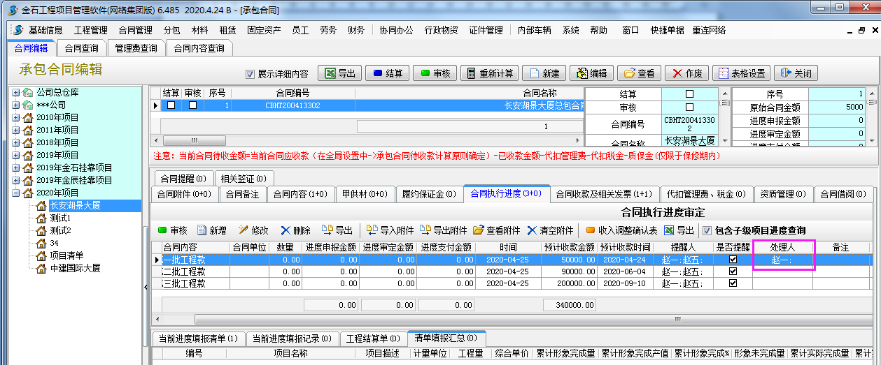 應(yīng)用場(chǎng)景:施工企業(yè)跟甲方簽訂承包合同時(shí)一般會(huì)約定好付款周期及付款比例,金石軟件專門開發(fā)了設(shè)置收款計(jì)劃模塊,收款計(jì)劃到期后系統(tǒng)會(huì)發(fā)送提醒給相關(guān)提醒人。