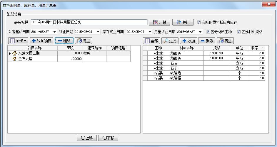 1.5工程項目管理系統中采購庫存及用量匯總表
