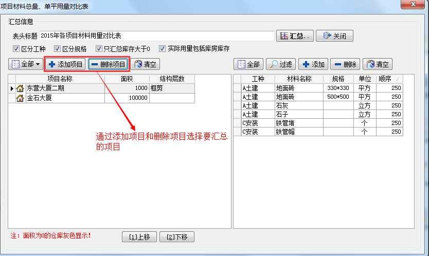 工程項目管理系統中設置取消下面的過濾選項"用量不等于0,查詢結果如下圖:
