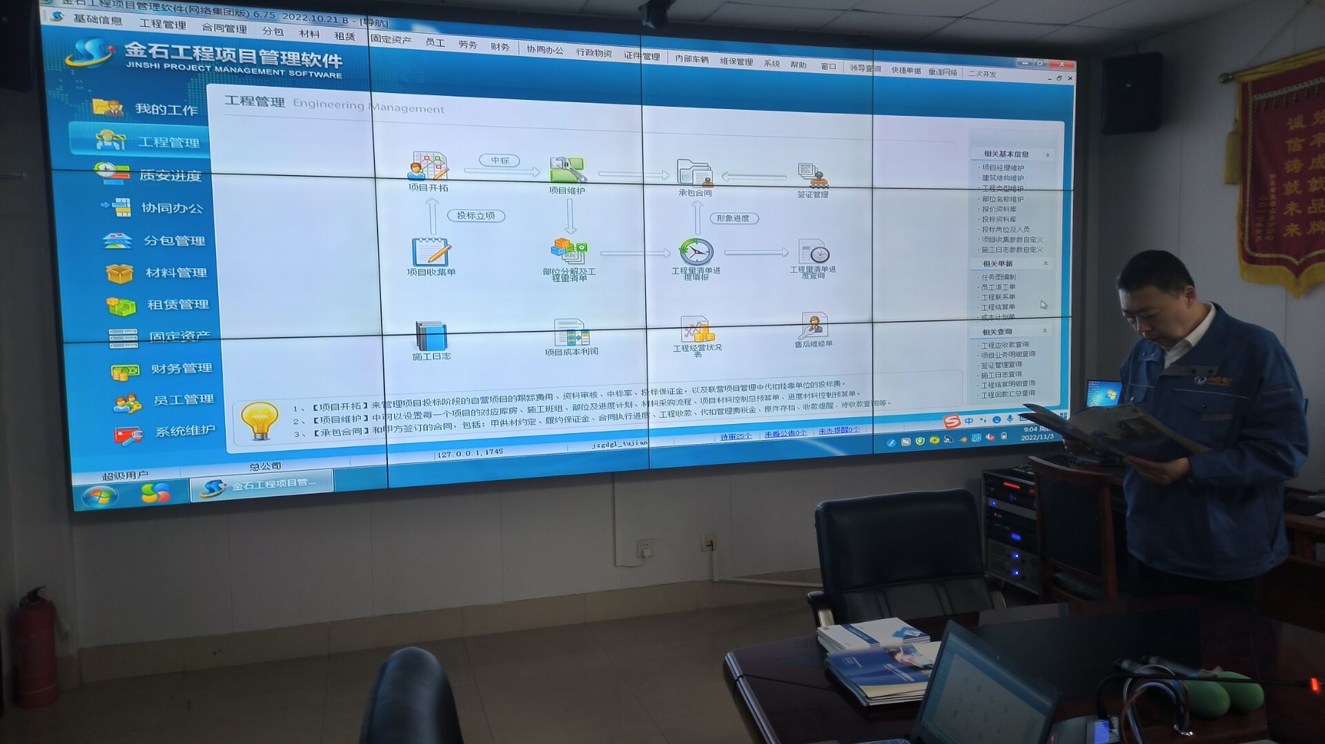 金石工程項目管理軟件工程師現場展示了軟件的基本操作模式、操作邏輯,以及特色功能。金石軟件從頂層設計入手,打造電力工程一體化數字平臺。打通了“設計—采購—監造—運輸—接收—安裝—運行”等環節,滿足企業全面、高效、科學管理,持續優化資源配置,實現項目過程管理可追溯、可評價。