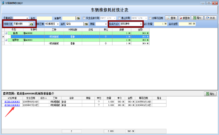 可根據生成方式進行匯總 包括(以車牌號匯總和以材料名稱匯總)(1)以車牌號匯總