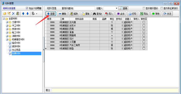 1.工程項目管理軟件—材料維護【材料管理】→【材料信息維護】
