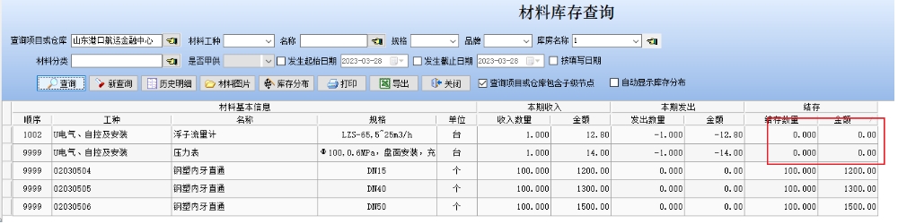 材料管理中新增【庫存平賬單】。【庫存平賬單】用來對庫存中結余數量為0但結存金額不為0的數據做平賬處理,即把金額歸零。如下圖所示,結存金額為非零數據,