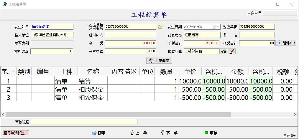 【工程結(jié)算單】增加成本歸集功能,可通過成本計(jì)劃單設(shè)置暫估收入,工程結(jié)算單產(chǎn)生結(jié)算收入,成本利潤(rùn)表查詢自定義成本、利潤(rùn) 。