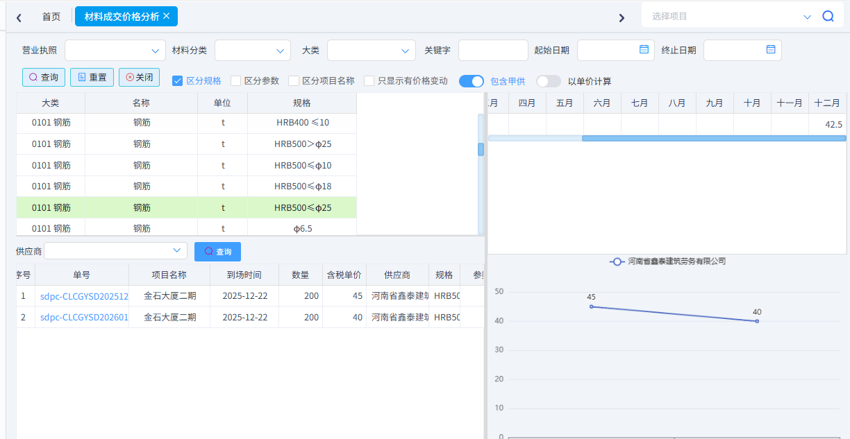 (3)、材料成交價格分析