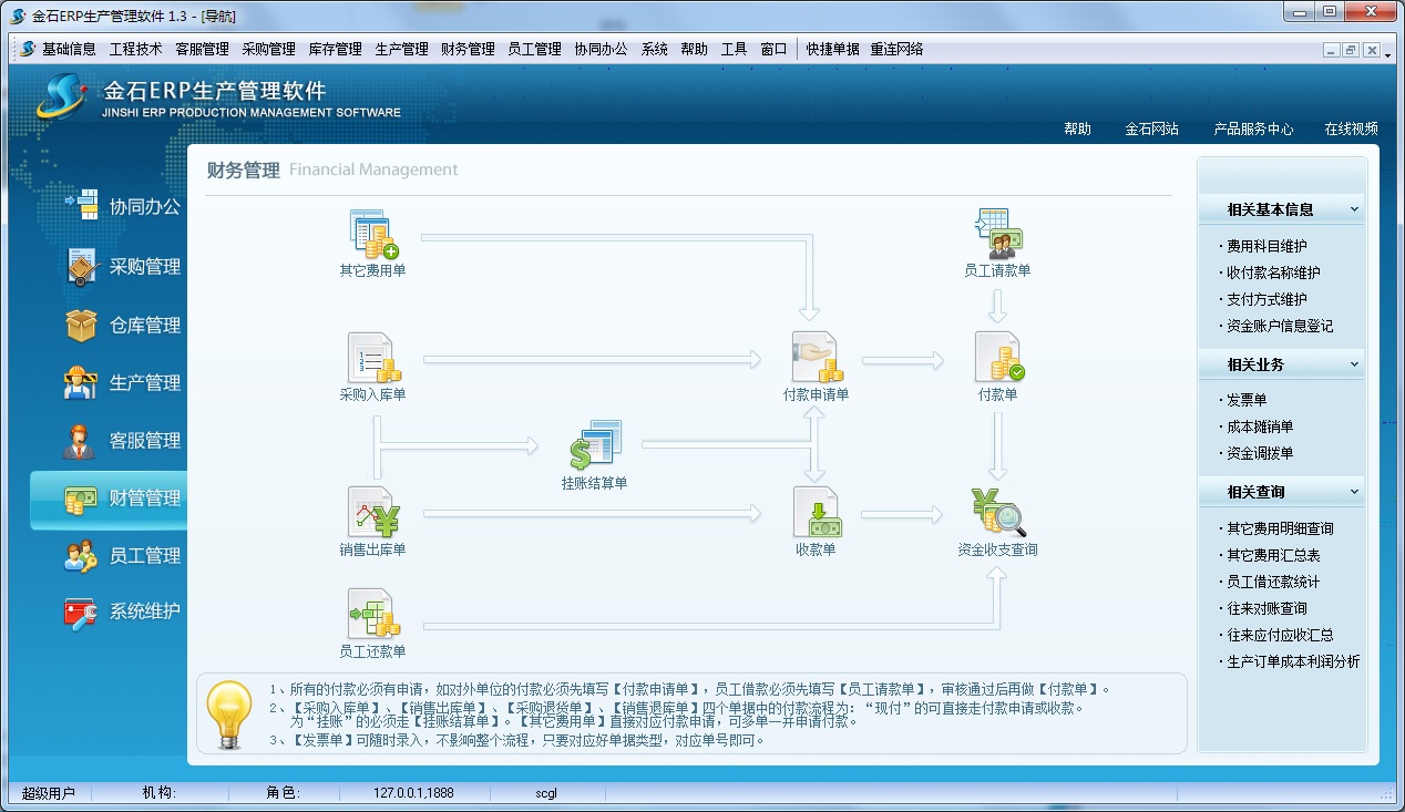 財(cái)務(wù)管理主要管理客戶訂單或者采購等業(yè)務(wù)的掛賬、付款、訂單收款、員工借還款報(bào)銷等業(yè)務(wù)。