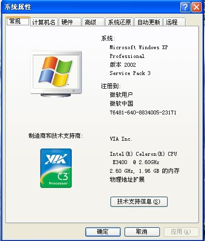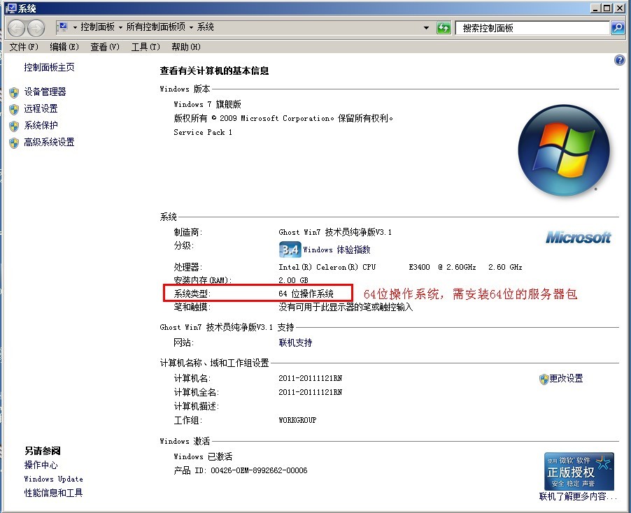 注:查看操作系統的方法如下:用鼠標右鍵點擊桌面上我的電腦。在彈出的窗口中可以看到操作系統是32位還是64位