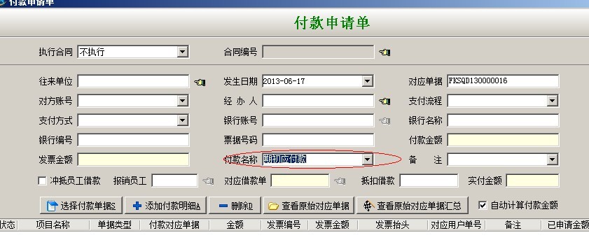 如果要支付期初欠款,要到財務模塊中直接新建付款申請單或付款單,然后在收款名稱里選擇期初應付。如下圖: